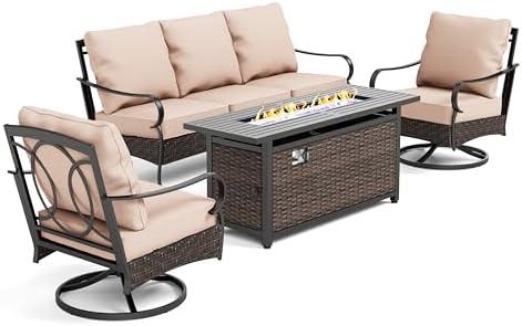 Stylish Outdoor Furniture Set with Fire Pit Table and Swivel Chairs