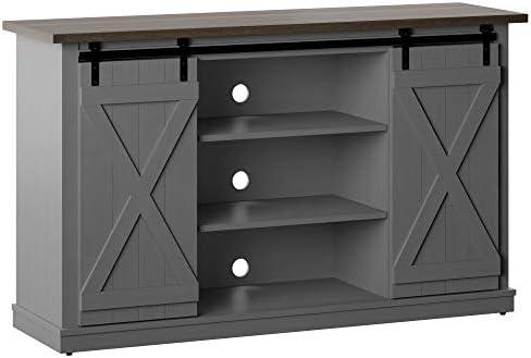 Twin Star Home Cottonwood Stand for TVs Up to 60″ with Sliding Barn Doors, Antique Gray