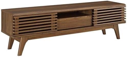 Mid Century Modern Low Profile 59″ Retro TV Stand with Slatted Shelves in Walnut