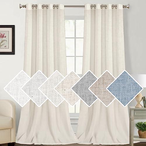 These elegant drapes are crafted from durable linen fabric, providing a soft and breathable quality that enhances any room. With an upgraded woven technology, they exhibit a distinct burlap look, making them an attractive option for various design aesthetics, from modern to farmhouse and boho. Measuring 52 inches wide by 96 inches long, the two-panel set is wide enough to cover most standard windows, ensuring both style and privacy. The curtains beautifully filter harsh sunlight while maintaining a comfortable atmosphere, allowing for a light and airy ambiance.