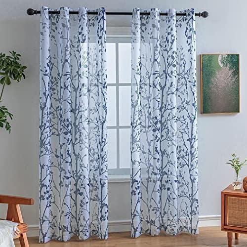 Elegant Semi Sheer Curtains with Blue Branches Design