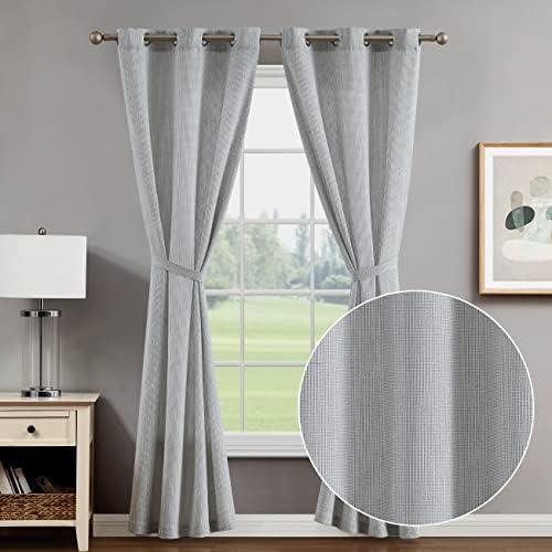 These curtain panels feature a beautifully textured, semi-sheer design that provides the perfect balance of light filtering and privacy, allowing you to enjoy natural sunlight without compromising on seclusion. The heavyweight fabric (300 GSM) is crafted from 100% yarn-dyed polyester, ensuring durability while maintaining a soft touch and smooth appearance. Stylish metal grommet headers add a touch of elegance, making them suitable for diverse settings such as bedrooms, living rooms, and dining areas. The included matching tiebacks enhance the décor, providing flexibility in styling and room ambiance.