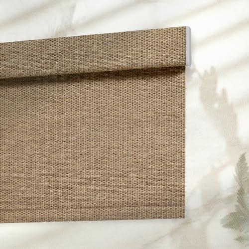 These stylish window coverings offer a refined look while providing the benefit of complete light blockage. The unique design features a natural linen cross-woven stripe with an imitation grass texture, making them not only functional but also visually appealing. They are crafted from 100% polyester, ensuring long-lasting durability and effective thermal insulation. Additionally, the upgraded aluminum valance and bottom rod are wrapped in the same fabric, enhancing light blockage and creating a seamless fit against the window frame. The cordless mechanism ensures safety for children and pets, allowing for smooth height adjustments without the hassle of cords.