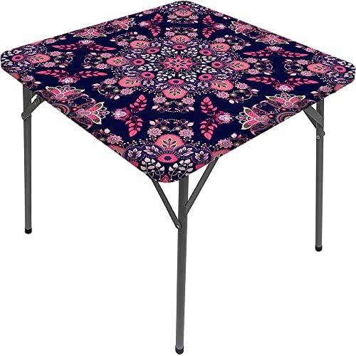 Paisley Square Table Cove, Paisley Style Textures, Elastic Edge, Can Wipe Indoor/Outdoor Dining Table Cover, Fit for 35″x35″ Square Table