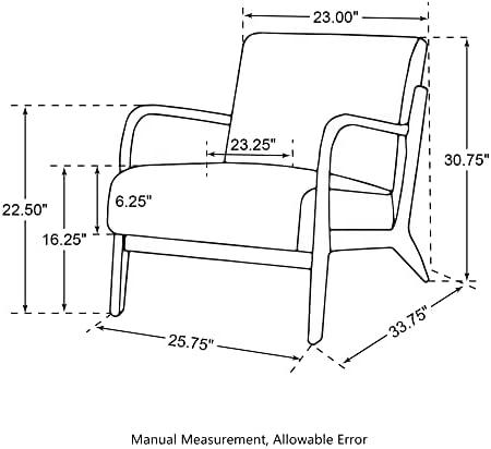 We appreciate the craftsmanship of the walnut rubberwood frame in this elegant accent chair. The frame offers a combination of durability and aesthetic appeal, providing a sturdy foundation that can support over 330 lbs without compromising stability. The dimensions—25.75” L x 33.75” W x 30.75” H—make it perfect for any corner of the room, while the warm walnut finish complements its mid-century modern design, making it a striking piece in any interior decor. The flared legs and curving arms add a unique character, ensuring that this chair is not just functional but also a statement piece.
