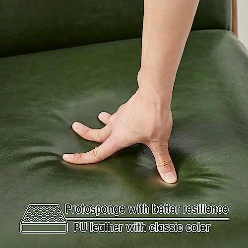 The mid-century modern design of this accent chair effortlessly elevates the aesthetic of any room. With its sleek hunter green PU leather upholstery and walnut rubberwood frame, we find that it strikes the perfect balance between contemporary style and classic elegance. Its curving arms and flared legs not only enhance its visual appeal but also provide a cozy spot for reading or relaxing. Whether in a living room, study, or bedroom, this chair serves as a versatile addition that complements a variety of decor styles, ensuring it remains a timeless piece in our home.