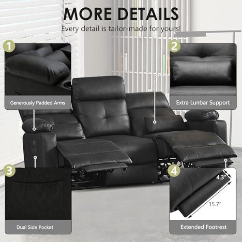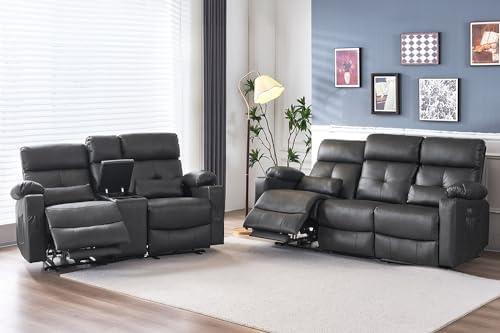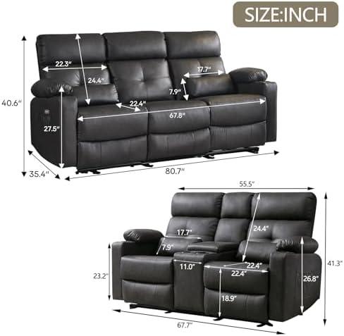 In addition to its aesthetic charm, the functional elements of this sofa set greatly enhance its appeal. The thoughtful inclusion of a center console with storage, cup holders, and side pockets means that practicality has not been overlooked. With an extended footrest, we can truly kick back and relax, accommodating users of various heights comfortably. The design of the reclining mechanism—operated via buttons and remote control—has been cleverly integrated, ensuring ease of use from multiple positions. These considerations make this sofa set not only a stylish addition to our home but a multifunctional furniture piece, perfect for enjoying movie nights or casual gatherings with family and friends.