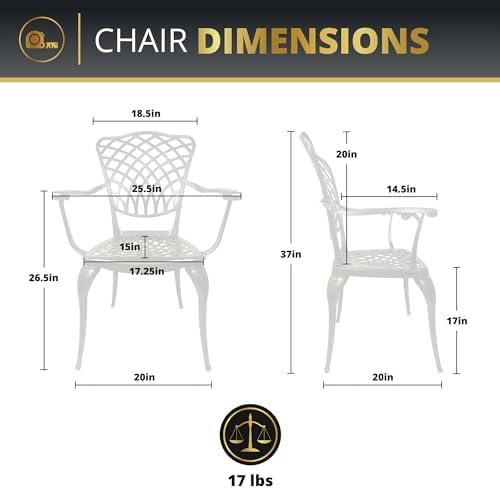We have truly elevated our outdoor gatherings with this stylish and functional dining set. The cast aluminum construction not only promises longevity and durability but also brings a charming aesthetic to our patio space. We appreciate the all-weather resistant features, ensuring that the furniture stands strong against elements without worrying about rust or fading. The comfortable contoured chairs enhance our dining experience, allowing us to linger longer during meals or conversations, while their decorative woven design adds a touch of elegance to our setting.