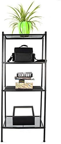 We have truly elevated our home organization game with this stylish four-tier shelving unit. Its sleek black metal design not only adds a modern touch to our living space, but also provides practical storage for various items ranging from books to decorative plants. The meticulously crafted metal shelves support an impressive weight capacity of 44 to 88 lbs, giving us peace of mind that our belongings are securely placed. We appreciate how each tier is thoughtfully sized, ensuring ample room for our favorite reads and cherished decor. The versatile design allows it to seamlessly fit into any room, be it our living room, bedroom, or even the kitchen.