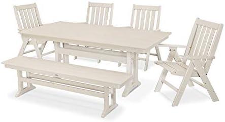 Polywood Vineyard 6-Piece Farmhouse Folding Dining Set with Bench (Sand)