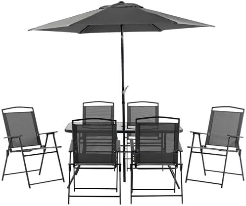 Stylish 6-Piece Patio Dining Set with Large Umbrella for Outdoor Enjoyment
