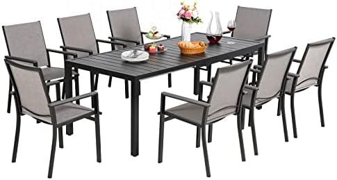 Expandable Dining Table with 8 Patio Textilene Chairs for Outdoor Spaces
