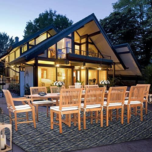 This exquisite dining set for outdoor spaces features a double extension table accompanied by stylish side and arm chairs, all crafted from solid A-grade teak wood. The table’s unique design includes butterfly leaf extensions, allowing for easy transformation to accommodate various gathering sizes. The 304-grade stainless steel hardware ensures durability, guaranteeing that this set can withstand both commercial and residential use. Each piece is handcrafted by skilled artisans, showcasing rich, warm tones and stunning wood grains that enhance its timeless elegance. The hand-rubbed wax finish not only adds a rustic charm but also provides a sleek surface for comfortable dining, whether indoors or outdoors.