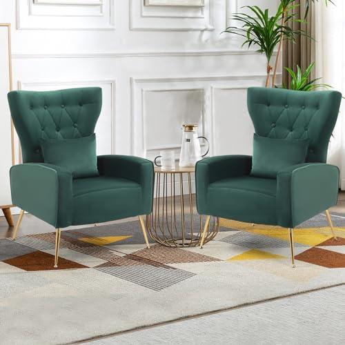 These stylish armchairs offer a sophisticated touch to any living space, combining a modern aesthetic with classic design elements. Crafted from solid wood and supported by durable stainless steel legs, they ensure stability while adding a luxurious feel to your decor. The skin-friendly velvet upholstery is not only visually appealing but also comfortable, featuring high-density foam in the seat cushion and backrest for optimal support. Generously sized at 27 x 20 x 38.8 inches, each chair accommodates a weight capacity of 300 lbs, making them suitable for various users. The included lumbar pillow enhances the comfort level, allowing for relaxing seating during long hours of use.