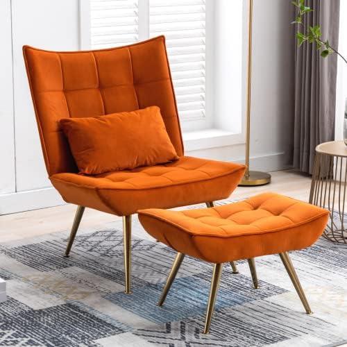 The plush fabric and high-density foam filling of this armchair provide a comfortable sitting experience, making it ideal for lounging or reading in any room. Its wide ergonomic seat combined with a reclining backrest angle contributes to superior comfort, while the elegant golden legs enhance its aesthetic appeal. The chair not only serves as a statement piece in your home but also includes a small ottoman that can be used separately for added versatility. With multiple layout possibilities, it can easily adapt to various interior spaces like bedrooms, living rooms, or study rooms.