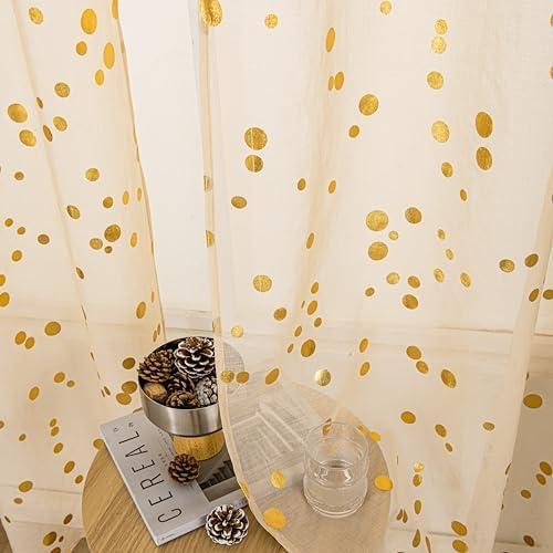 Gold Foil Print Sheer Curtains for Elegant Home Decor