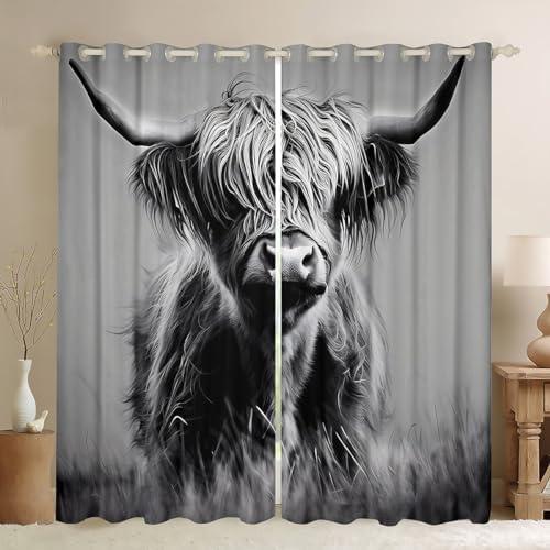 Adorable Curtains Featuring Highland Cattle Design for Home Decor