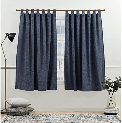 The cotton-blend curtain panels feature a sophisticated textured fabric, complemented by tuxedo tab top styling and self-covered button accents, making them a stylish addition to any home decor. Their light-filtering capability allows natural light to enter while maintaining privacy, creating a warm ambiance in your living space. Designed to fit curtain rods up to 1.5 inches in diameter, they are easy to hang and can enhance the aesthetic appeal of any room. Additionally, they are machine washable, offering a practical solution for maintaining their elegance.