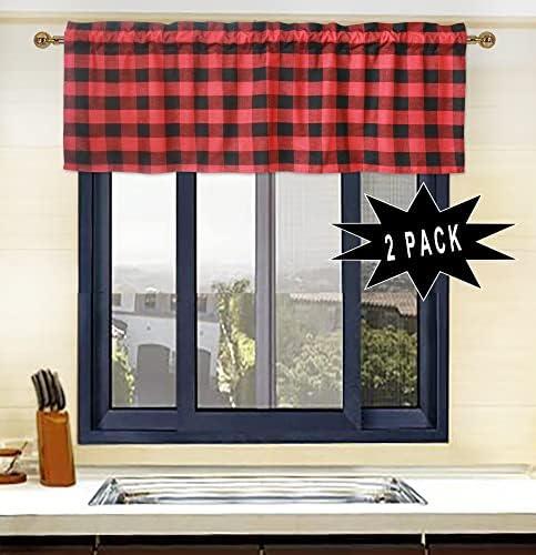This window drape panel set offers a unique buffalo plaid design in vibrant red and black, perfect for adding a rustic touch to your kitchen or any room in your home. Each panel measures 52 inches wide by 18 inches long and features a 3-inch rod pocket, ensuring a perfect fit for most curtain rods. Made from a durable blend of 35% cotton and 65% polyester, these valances not only enhance your decor but also provide a cozy ambiance. The fully hemmed edges ensure that they withstand the test of time and look polished in any setting.