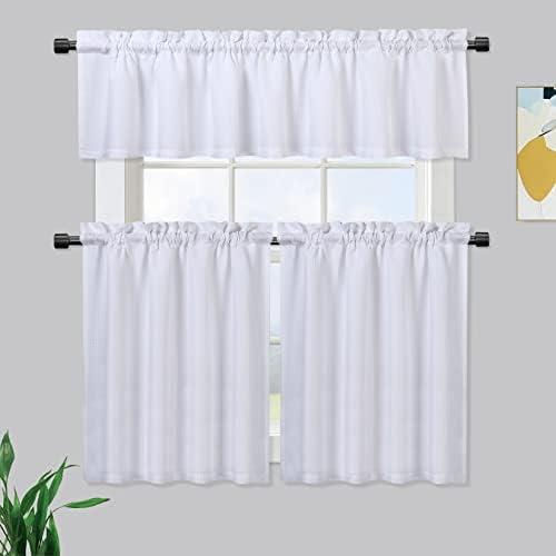 This stylish set includes two tiered curtains measuring 30″W by 24″L and a valance measuring 60″W by 15″L, making it perfect for a variety of window sizes. The elegant rod pocket design allows for easy installation on most standard curtain rods, while the fashionable waffle weave pattern complements any home decor style, from modern farmhouse to rustic and French country aesthetics. Crafted from high-quality polyester, the fabric is soft, durable, and wrinkle-resistant, ensuring it maintains its beauty over time. Additionally, the colorfast material prevents fading, allowing the curtains to retain their crisp, white hue even after prolonged use.