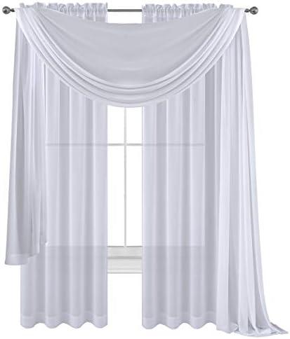 This three-piece curtain set, comprising two sheer panels and one elaborate scarf, offers a touch of elegance and a refreshing ambiance to any room, especially in bedrooms and kitchens. The panels each measure approximately 57″ to 60″ wide and 84″ long, making them a perfect fit for standard windows. Made from 100% polyester, these curtains strike a balance between letting natural light flow into your space and maintaining a degree of privacy. The simplicity of the design allows them to blend seamlessly with various decor styles, whether you aim for a bright, cheerful atmosphere or a more subdued elegance.