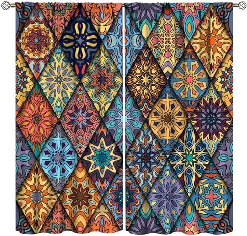 These beautifully designed drapes feature a vibrant mandala pattern that instantly brings a touch of bohemian flair to your living space. Crafted from 100% polyester, they are not only visually appealing but also functional, offering 80% blackout capabilities which help in protecting privacy and darkening rooms during the day. The curtains come as a set of two panels, each measuring 26″ x 84″, making them ideal for various settings such as bedrooms, living rooms, or even kitchens. Their 3″ rod pocket design ensures an easy fit on standard curtain rods.