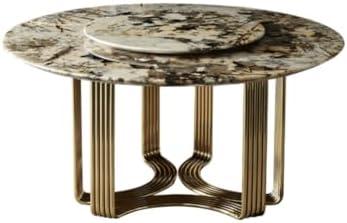 This elegantly designed dining table serves as a sophisticated centerpiece for both dining rooms and outdoor spaces, effortlessly blending with a range of decor styles. Crafted with a natural marble surface, it features a brushed metal chassis that not only enhances its aesthetic appeal but also ensures stability during use. The dimensions make it an ideal fit for gatherings, whether casual or formal, with a diameter of 47 inches and a height of nearly 30 inches. The standout feature is the 360° rotating turntable, which can be easily disassembled according to your needs, making it perfect for hosting dinner parties and family meals alike.