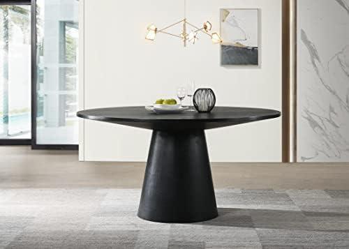 Eafurn Ebony Black 59″ W Contemporary Round Dining Table for 4-6 Peoples