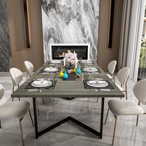 This impressive dining table features a robust construction made from high-density MDF boards and thickened metal legs, ensuring both stability and durability. Designed to accommodate 6 to 8 people, its spacious dimensions of 78.7″ in length provide ample surface area for family meals or meetings. The vintage industrial style, accentuated by the chic grey color and matte black elements, offers an elegant look that enhances any dining or kitchen space. Additionally, the innovative chamfer design not only adds to its aesthetic appeal but also reflects a commitment to quality that has undergone rigorous inspections.