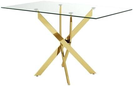 This elegant dining solution features a high-quality tempered glass top designed for both style and function. The 71-inch table comfortably accommodates 6 to 8 people without feeling cramped, making it perfect for family gatherings or dinner parties. With a sleek and modern design, the table is complemented by sturdy gold metal legs, ensuring stability and longevity. The adjustable feet are a thoughtful addition, allowing the table to remain steady on uneven surfaces and protecting your floors from scratches.