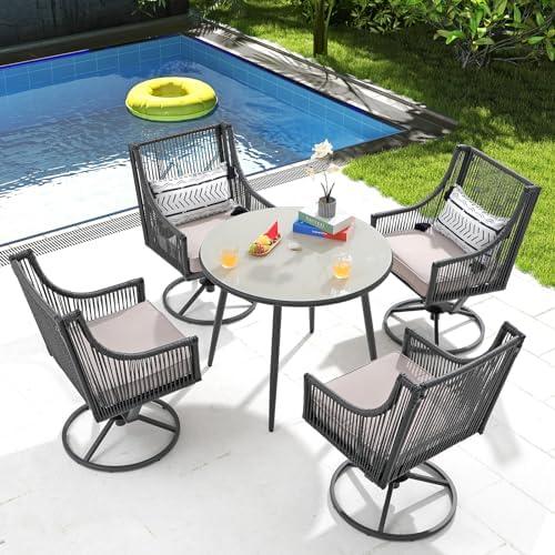 Chic Outdoor Wicker Dining Set with Swivel Chairs