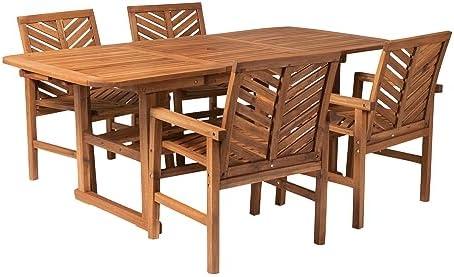 This outdoor dining set exemplifies timeless elegance, making it an ideal choice for both family meals and entertaining friends. Crafted from solid acacia wood, it is designed to withstand various outdoor elements while providing comfort and style. The set includes four chairs with a charming chevron pattern, offering both aesthetic appeal and support, accommodating up to 250 lbs each. The table features a convenient butterfly extension and includes an umbrella hole, ensuring you’re covered for sunny days and evening gatherings.