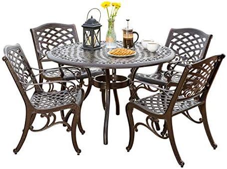 Among the many advantages of this dining set, customers will appreciate its sturdy construction, rust-resistant material, and versatile design that complements various outdoor aesthetics. The circular mesh pattern table is perfect for enjoying meals in the great outdoors while providing excellent stability. However, some assembly is required, which may take time, and the set ships in multiple boxes, potentially causing inconvenience during delivery. Weigh these pros and cons to determine if this outdoor ensemble fits your needs.
