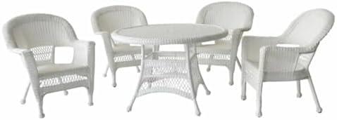 Jeco 5 Piece Wicker Outdoor Dining Set, White