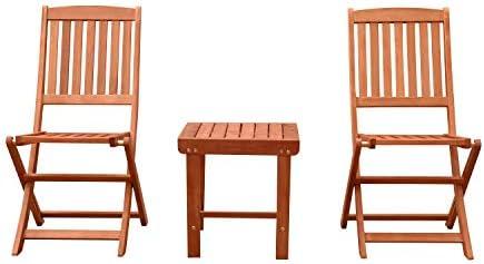 This outdoor dining set is perfect for those who enjoy sipping coffee or tea in their patios or gardens. Crafted from 100% Eucalyptus, a highly durable hardwood, it comprises two folding chairs and a side table designed to withstand various weather conditions. The dense core of Eucalyptus not only assures longevity but also features a beautiful natural wood finish that enhances the charm of any outdoor setting. Easy to assemble, this set stands out for its practicality and sleek design, making it an attractive addition to your outdoor arrangement.