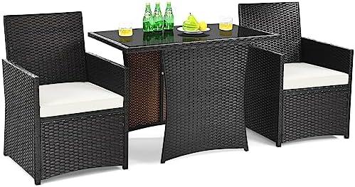 However, while the patio set boasts numerous advantages, it also presents a few drawbacks. The weight capacity might not be sufficient for larger individuals or heavy items, requiring careful consideration during use. Furthermore, although the zippered cushions are machine washable, maintaining the rattan and glass tops might require more effort over time to keep them looking pristine. The compact design may limit seating during larger gatherings, making it more suitable for intimate settings. this bistro set strikes a balance between aesthetic appeal and functional comfort in outdoor spaces.