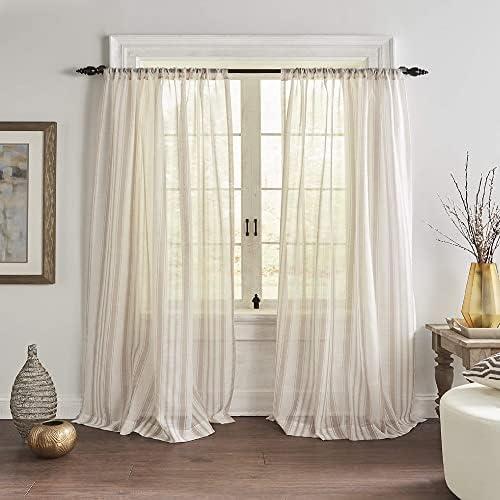 Elrene Home Fashions Hampton Stripe Sheer Window Curtain, 52″ x 84″ (1 Panel), Linen