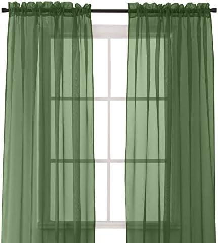Elegant Comfort 2 Piece Solid Sheer 60″ x 84″ Window Curtains/Drape/Panels/Treatment, Hunter Green