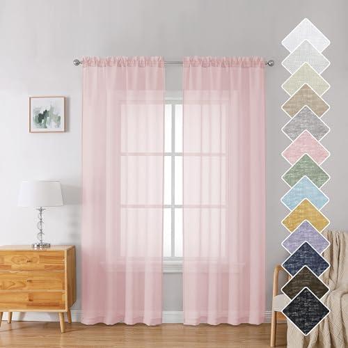 Transform any room with these charming sheer curtains, designed to bring a touch of elegance and softness. Made from durable faux linen and measuring 40 inches wide by 84 inches long, each panel combines style and functionality. The rod pocket design allows for easy installation on most curtain rods while providing a graceful draping effect. With a lovely peach pink hue, they not only filter sunlight effectively but also maintain a level of privacy without completely obstructing the view, making it a great addition to bedrooms, living rooms, and nurseries.