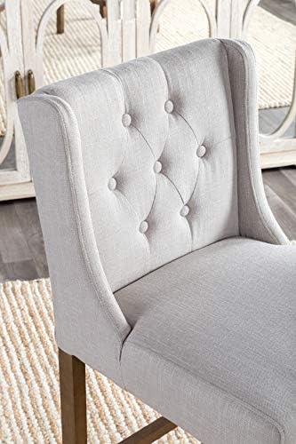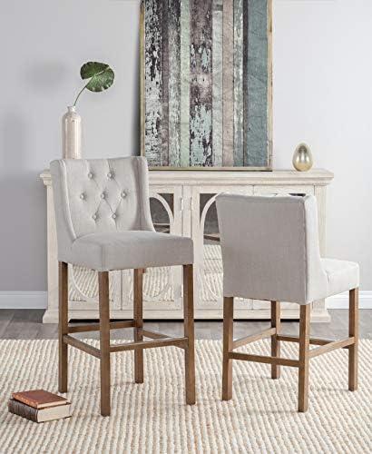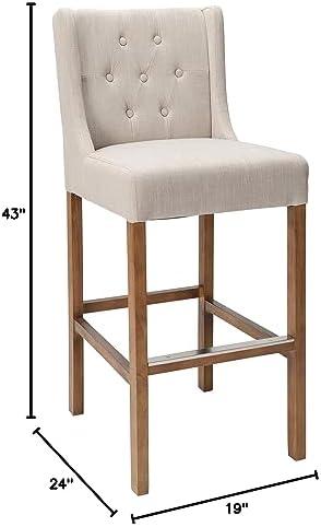 When we evaluate the craftsmanship and build of this elegant seating option, we are pleasantly surprised by its attention to detail and quality materials. The supple blended fabric upholstery not only enhances its aesthetic appeal but also provides a durable surface that is designed to withstand daily use. The button tufting adds a formal touch, ensuring the barstool maintains its sophisticated charm. Moreover, the combination of solid wood legs and metal footrest significantly contributes to the overall sturdiness, creating a stable seating experience that we can rely on. This thoughtful construction style harmonizes both classic and modern elements, allowing the chair to fit seamlessly into various interior designs.