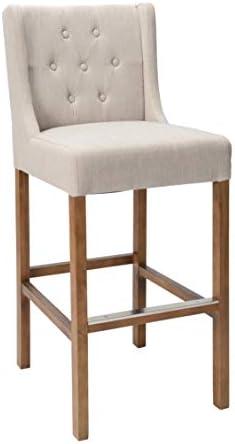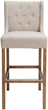 We find that this barstool elegantly balances comfort and style, making it a worthy consideration for anyone looking to enhance their home decor. Its supple blended fabric not only provides a luxurious feel but also complements various interior styles, thanks to its neutral hues that can easily integrate into any setting. The button tufting detail offers a sophisticated touch that elevates the overall aesthetic, while the contrasting solid wood legs lend a sturdy, classic appeal. Furthermore, the inclusion of a metal footrest adds an extra layer of comfort, making it ideal for both casual dining and entertaining guests.
