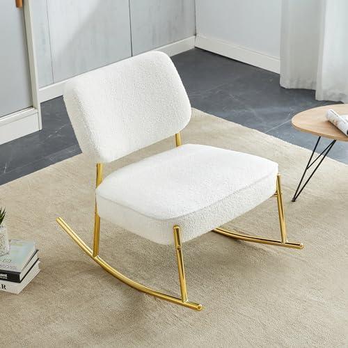 Elegant White Rocking Chair with Backrest and Golden Metal Legs