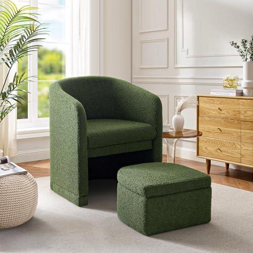 Stylish Green Barrel Chair with Storage Ottoman for Modern Living