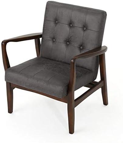 Christopher Knight Home Callahan Mid-Century Modern Leather Club Chair, Slate / Dark Espresso