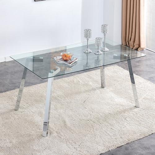 Modern Minimalist Glass Dining Table with Silver Metal Legs