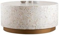 The coffee table exudes sophistication with its elegant ivory top that perfectly complements the striking gold base. This exquisite contrast adds a touch of opulence to any living space. Crafted from Capiz shells, the floral patterns on the table give it a unique character, elevating it from a mere furniture piece to a statement of décor. Its rich textures and finishes reflect our commitment to transforming spaces into elegant environments. The circular shape not only enhances the modern aesthetic but also promotes a sense of flow and harmony within the room.