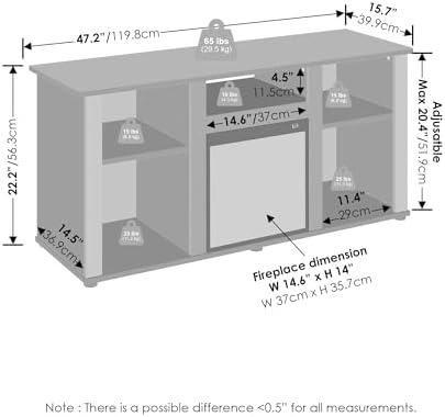 When considering the dimensions of this TV stand, we find it strikes a perfect balance between functionality and style. Its measurements of 15.67 inches deep, 47.24 inches wide, and 22.21 inches high make it well-suited for most living spaces, allowing it to fit comfortably in corners or against walls without overwhelming the room. The stand is designed to support televisions up to 55 inches, and the top surface has a substantial weight capacity of 65 lbs, ensuring our electronics can be placed securely. This aspect allows us to blend our media setup seamlessly with the stylish charm of an electric fireplace feature.