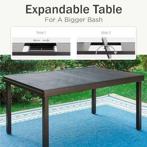 We love how this outdoor dining set enhances our gathering experience with its incredible flexibility. The expandable table design allows us to easily accommodate anywhere from six to eight people with a simple mechanism that takes just seconds to operate. With dimensions that extend from a cozy 61 inches to a spacious 84 inches, it’s fantastic for hosting both intimate dinners and larger parties. The generous tabletop offers ample space for delicious meals, refreshing drinks, and even board games, making our gatherings not just easy but also delightful.