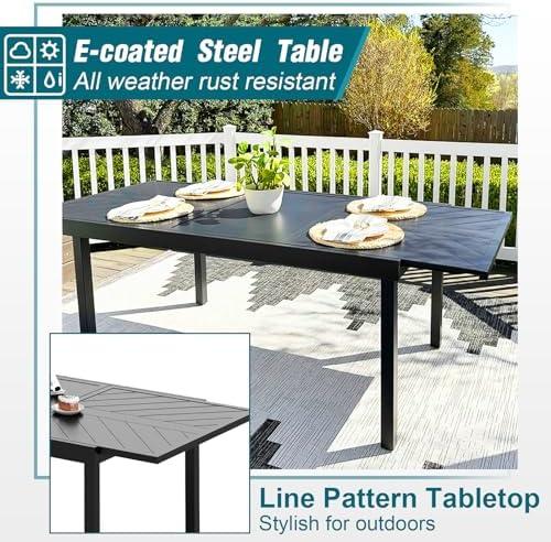 Our experience with this outdoor dining set has been nothing short of delightful. The expandable dining table boasts a remarkable range, seamlessly extending from 61 inches to a spacious 84 inches, allowing us to entertain between 6 to 8 guests comfortably. We appreciate the versatility it offers, easily transforming our patio into an inviting spot for gatherings. The table’s sturdy steel frame, treated with an eco-coating process for rust resistance, gives us confidence that it can withstand the elements while maintaining its aesthetic appeal, enhanced by a unique flower pattern tabletop. This thoughtful design ensures it’s not only functional but also adds a touch of elegance to our outdoor space.