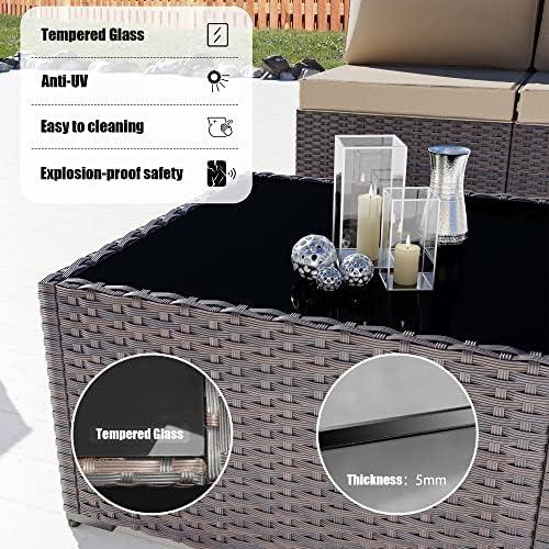 We found that maintaining our wicker patio set has been remarkably simple, ensuring longevity and comfort over time. The waterproof wicker not only holds up well against varying weather conditions but also simplifies the cleaning process. With removable and washable cushion covers, keeping the cushions fresh is hassle-free. The tempered glass top on the coffee table is also a breeze to wipe down, making spills or dirt cleanups quick and easy. Moreover, the rust-resistant metal frame provides added reassurance, allowing us to enjoy the outdoors without the worry of decay or corrosion.